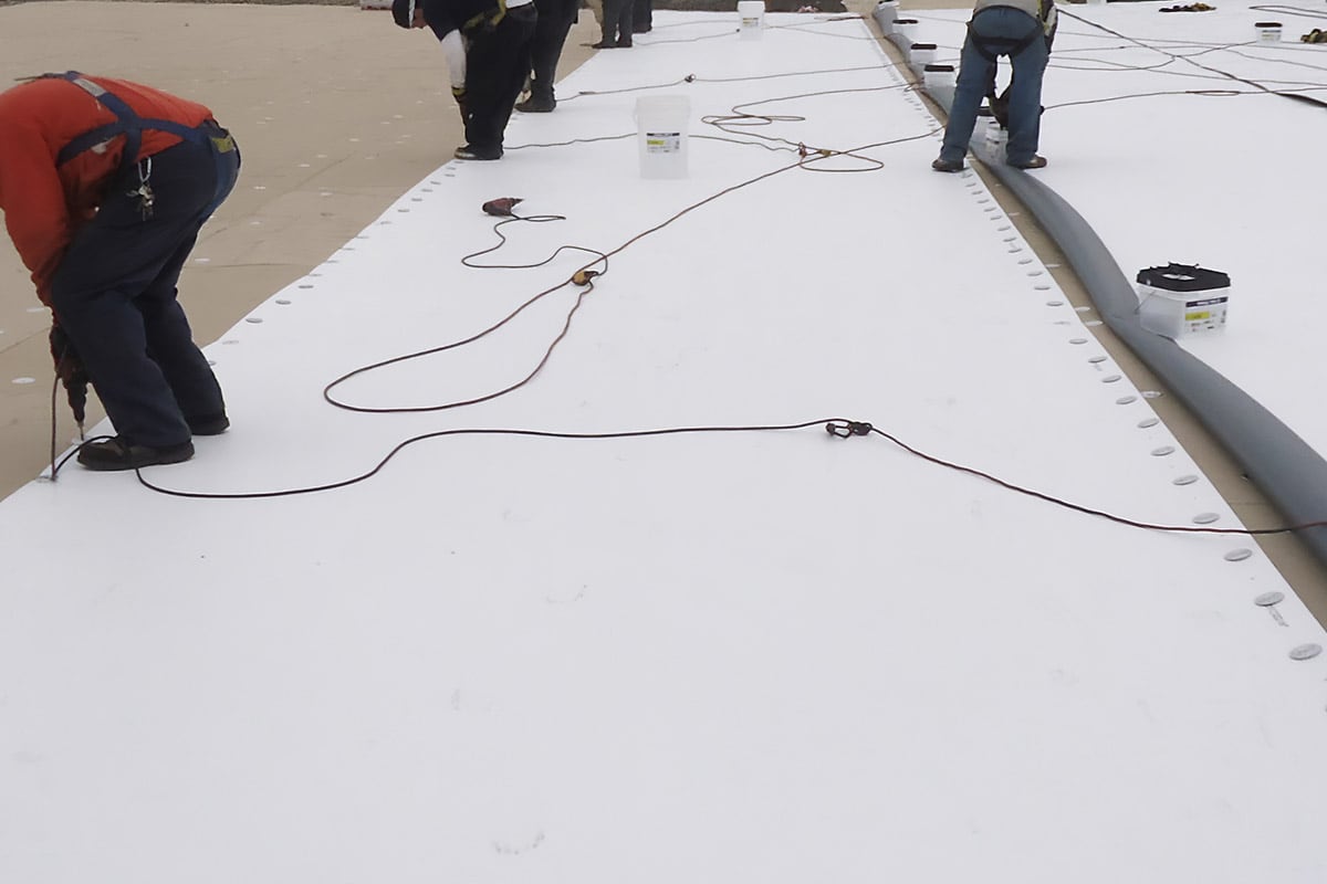 Suministro e instalación de membrana impermeabilizante TPO ; este material es utilizado sobre concreto y lamina; la instalación se lleva a cabo por medio de termofusión, por lo que da un resultado de hermeticidad. Al ser combinada con la placa de Polyiso reduce la temperatura hasta en un 12%, es resistente al ambiente, agua; y es posible caminar sobre esta membrana de manera confiable; este es producto fabricado en poliolefina termoplástica.